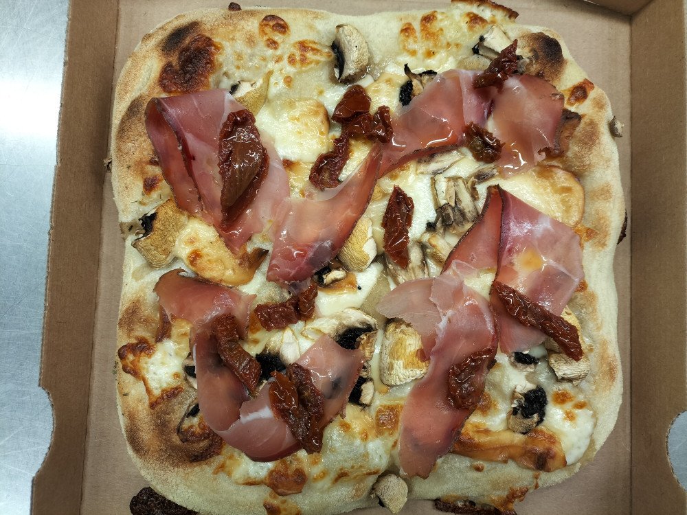 Premier essai chez Milipizz’ ce soir à la grosse aige, ne sachant pas quoi prendre j’ai demander de l’aide, et j’ai absolument pas été déçu, la pizza carré apporte un truc en plus et beaucoup de garniture. J’y retournerais sans aucun problème et n’hésitez pas!